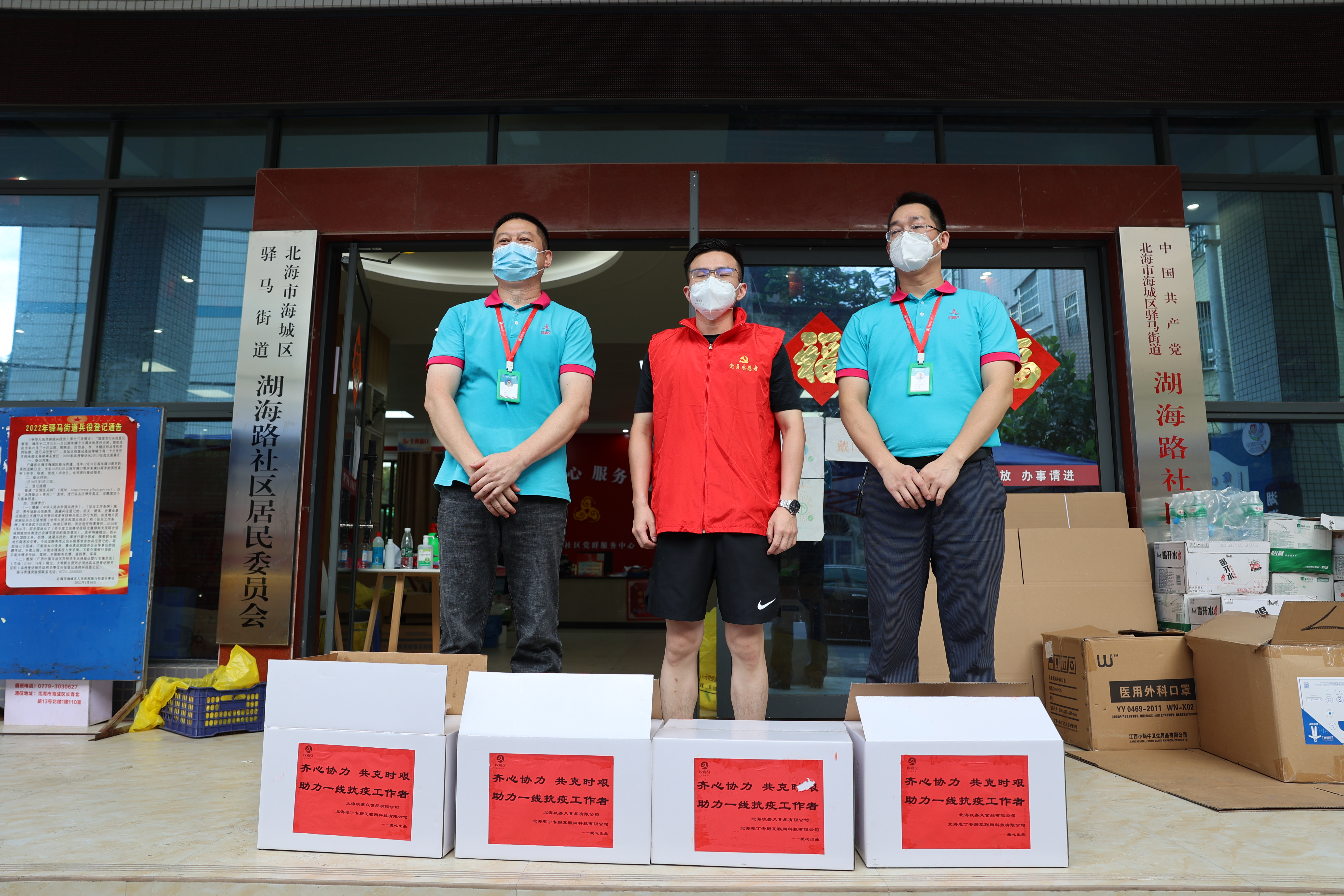 七月北海,烈日當(dāng)空,酷暑難耐,炎熱天氣對一線醫(yī)護(hù)人員和志愿者是一項嚴(yán)酷的挑戰(zhàn),據(jù)悉許多社區(qū)工作人員都累到暈厥?!妇良尉谩箍挂邔m椥〗M迅速采取行動,從7月19日至今,已組織人員提供了近萬個降溫冰袋、數(shù)百箱礦泉水、以及大量帳篷和太陽傘等防暑降溫物資,囑咐奮戰(zhàn)在一線的抗疫人員在做好抗疫工作同時,也要注意自身健康安全,預(yù)防中暑。