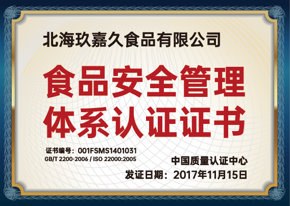 食品安全管理體系認證證書