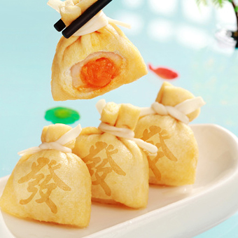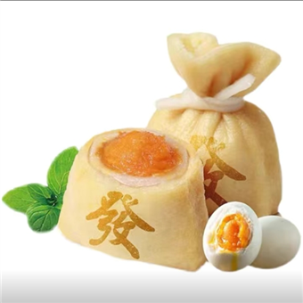 產(chǎn)品特性:皮薄餡足,烙印著“發(fā)”字的金黃腐皮包裹了滿滿一袋餡料。既有麻薯的Q軟,又有海鴨蛋黃的咸香,層層驚艷味蕾。